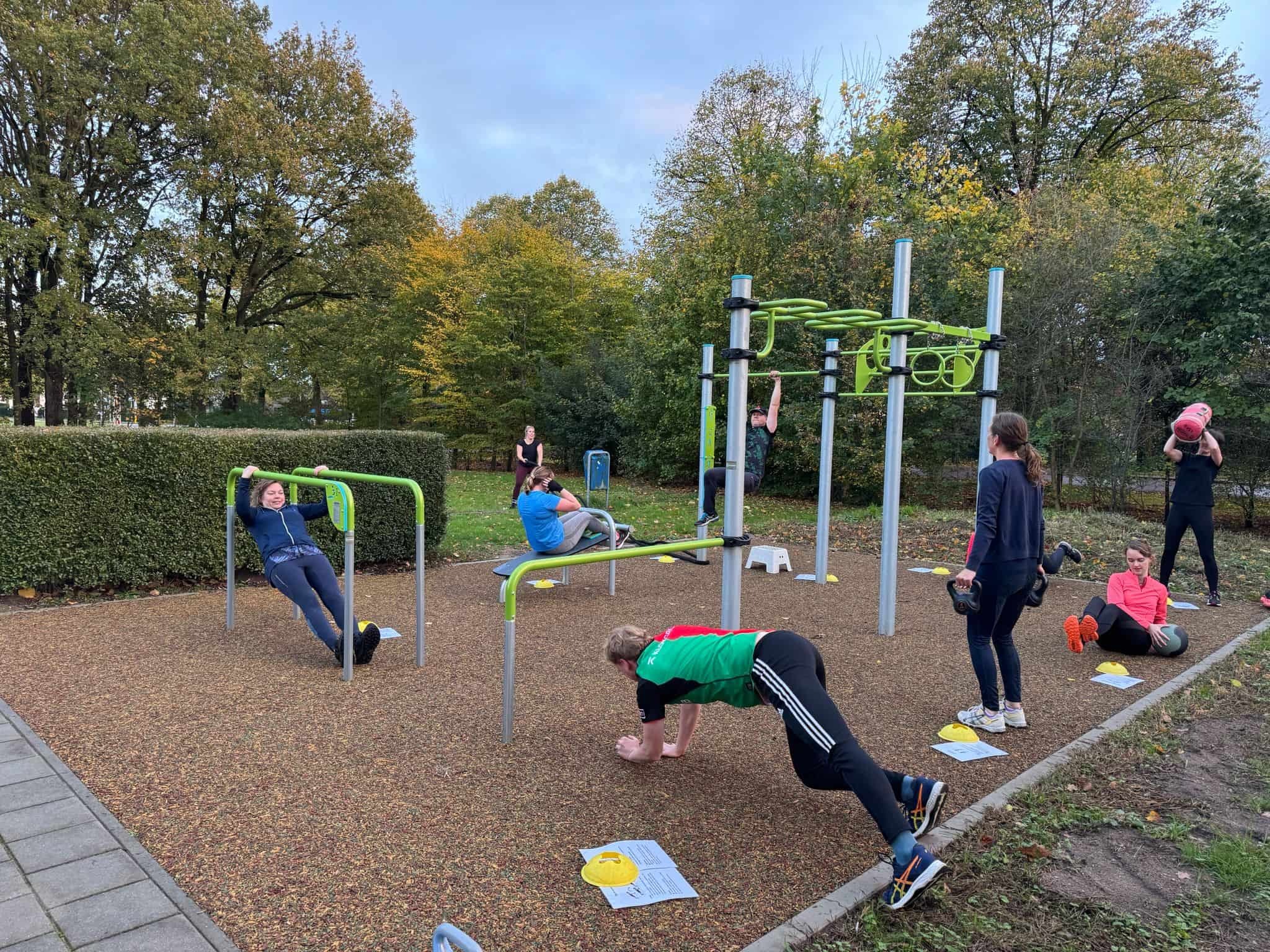 De collega’s van Wieke en Jeroen hebben intussen een aardige sportroutine opgebouwd samen met Wieke, die ze 1 keer per week flink laat zweten met een bootcamp in de fitnesstuin. Ook trainen ze samen voor de Zevenheuvelenloop. “Als je na een pittige werkdag thuis op de bank ploft kom je daar haast niet meer vanaf, zeker als het buiten al vroeg donker is. Of je er ook nog een druk gezin bij hebt. Meteen na afloop van je werkdag hier op school sporten, blijkt voor veel collega’s heel goed te werken,” legt Wieke uit.